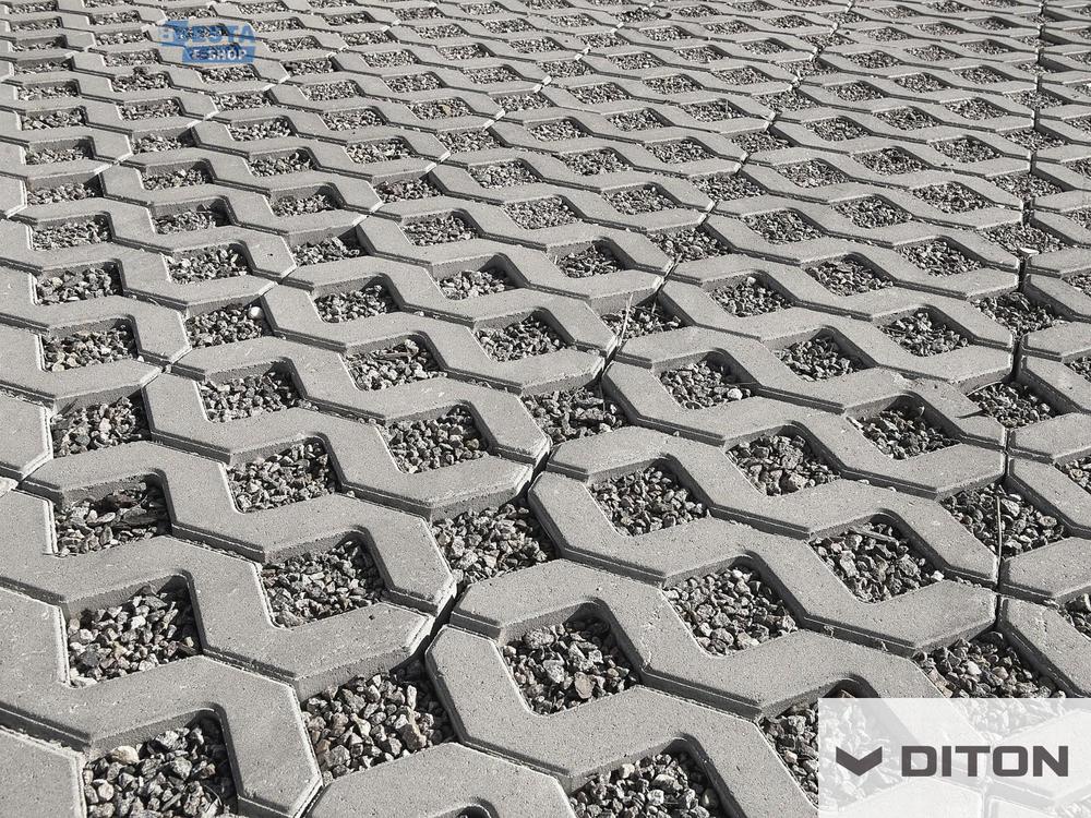 Použití: - příjezdové cesty k rodinným domům, parkoviště apod., zpevnění svahů s mírným sklonem Specifikace: - vibrolisovaná dvouvrstvá betonová dlažba - vysoká pevnost - mrazuvzdorná - odolná proti působení vody a chemickým rozmrazovacím látkám - vysoce otěruvzdorná nášlapná vrstva (nášlapná vrstva s použitím křemičitého písku) - dobré protiskluzné parametry Výhody: - dlouhodobá životnost - umožňuje provedení zpevnění plochy současně s částečným zatravněním - podíl zeleně na celkové výměře zpevněné plochy dosahuje 35% - snadná a rychlá pokládka nevyžadující speciální technologie - odvod vody otvory přirozeně vyplněnými zeminou - snadno rozebíratelný povrch bez nutnosti použití speciálních technologií - umožňuje dobré splynutí se zatravněnou plochou