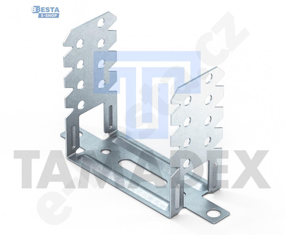 Do cihelné stěny kotvíme natloukacími hmoždinkami, do betonového stropu ocelovými hmoždinkami a do dřevěné konstrukce vruty FN s plochou hlavou. Profily CD přišroubujeme k závěsu dvěma vruty LB TEX a přesahující část ohneme nebo ustřihneme. Kovový konstrukční prvek Materiál: DX51 Ochranná vrstva: Z100 Třída hořlavosti: A1