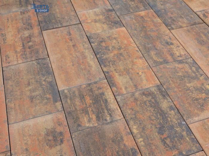 Moderní dlažba větších formátů v sestavě 3 kamenů se hodí na terasy, chodníky, příjezdové cesty i dvory.