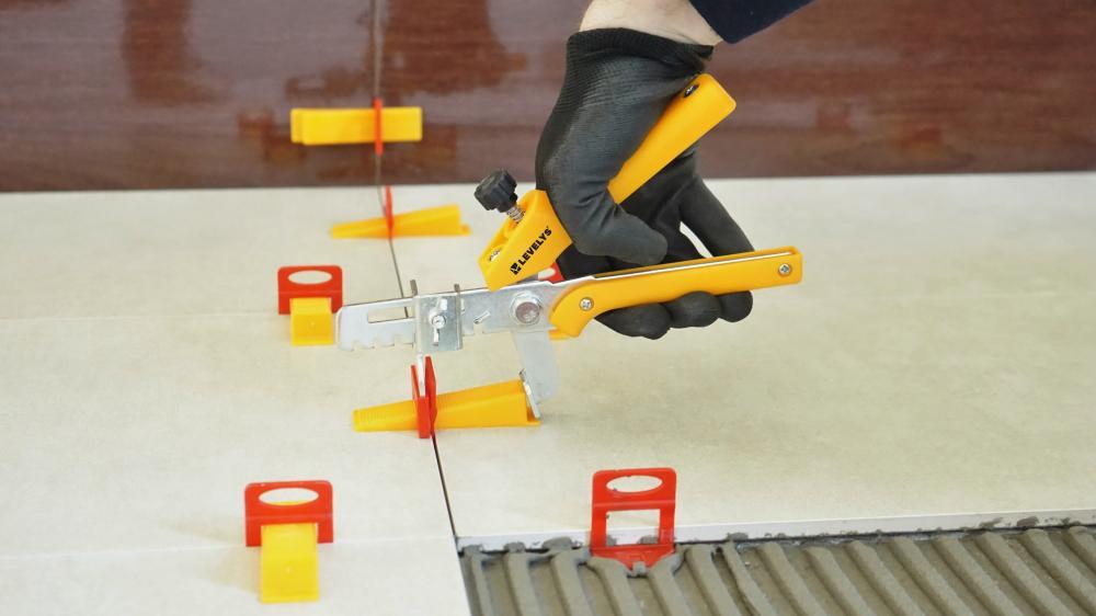 Kleště podlahové k pokládání dlažeb jsou vyrobeny z oceli a kvalitního plastu.
