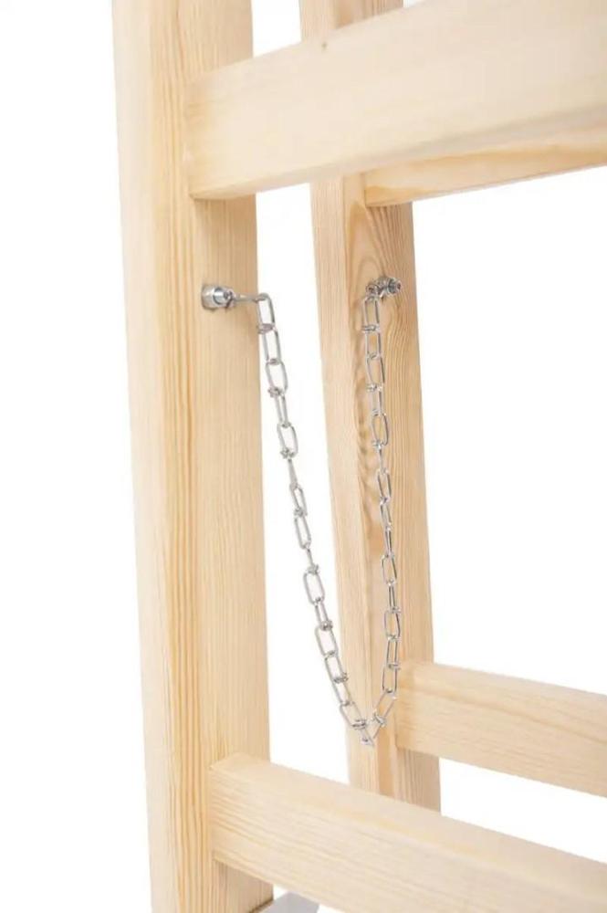 - štafle jsou vyrobeny z kvalitního dřeva, které zajišťuje dostatečnou pevnost a stabilitu při používání - mají dvě rovnoběžné nohy spojené příčkami, které slouží jako stupně - nohy jsou nahoře spojeny pantem, což umožňuje štafle jednoduše rozložit a postavit - díky své konstrukci a šířce poskytují dobrou stabiltu, což je důležité pro bezpečnost při práci ve výšce - jsou lehké a snadno přenosné, což umožňuje jejich jednoduchou manipulaci a skladování - díky přírodnímu materiálu jsou oblíbené u řemeslníků, kteří preferují tradiční nástroje Vlastnosti: - 2 ks řetízků - 2 výztuhy - háček na nářadí - nosnost 150 kg