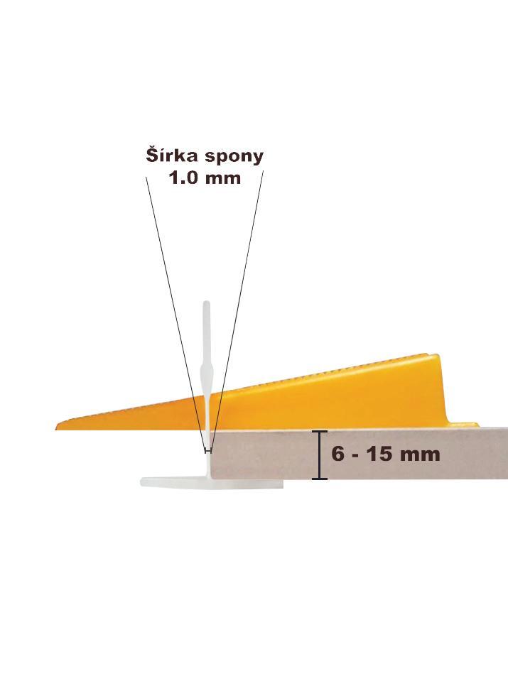 - náhradou za klasické křížky na dlažbu - spony jsou určeny k jednorázovému použití Využití: - pro 6 až 15 mm silnou dlažbu nebo obklad - pro všechny rozměry dlažeb a obkladů (např. 100 x 50 cm a podobně) - v interiéru i exteriéru - při tvorbě spádů do odtoku, ve sprchovém koutě - na křížový, diagonální nebo parketový spoj - na schodech a soklech - u nerovnoměrné plochy podlah, stěn a dlaždic - vyrovnávací systém nevyužijtete pouze u mozaiky na síťce Upozornění: - při klasické dlaždici (kde hrany dlažby či obkladu nejsou řezané do pravého úhlu, t.j. do 90 °) bude výsledná spára širší, než šířka spon. Například pokud použijete 1 mm sponu LEVELYS při klasické dlaždici, tak výsledná spára bude 1,5 mm a více (1 mm bude, kde se dlaždice spojí a opřou o sponu). - při rektifikované dlaždici (kde hrany dlažby nebo obkladu jsou řezané do 90 °, tj pravého úhlu) bude výsledná spára stejná, jako šířka spony. Například pokud použijete 1 mm sponu LEVELYS při rektifikované dlaždici, tak výsledná spára bude také 1 mm.