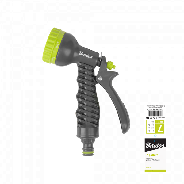 Postřikovač na hadici se 7 funkcemi umožňuje zalévat různými proudy vody: od koncentrovaného proudu až po rozptýlenou mlhu. Průměr zavlažovací hlavice je 5cm.