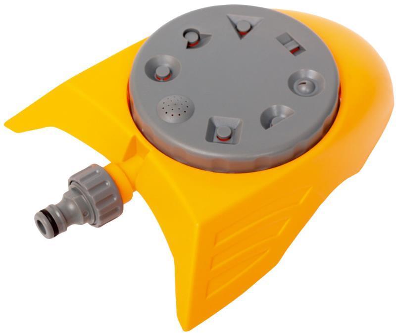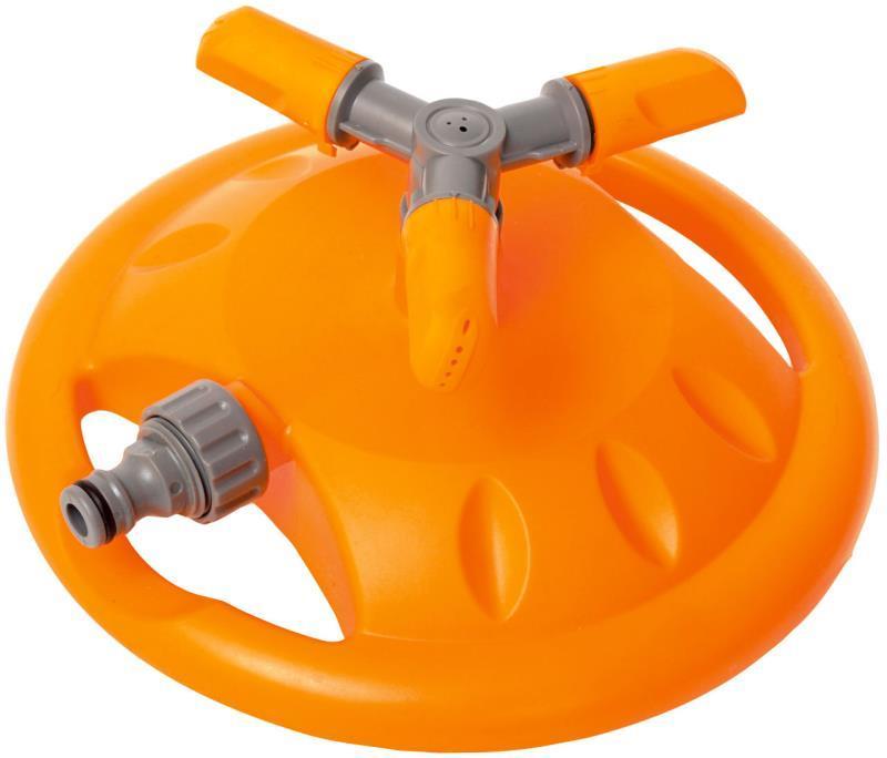 Rotační zavlažovač s nastavitelným úhlem ramen umožňuje nastavit rozsah postřiku a zajišťuje rovnoměrný postik. Průměr zavlažování: 10,4 m, dosah: 85 m2.