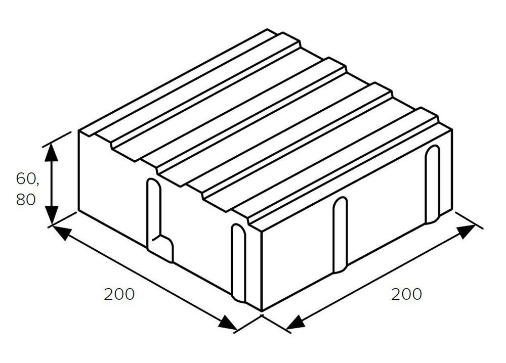 - výstupky o výšce 5 mm s roztečí 5 mm; dlažba o výšce 60 mm je určena pro ryze pochozí plochy