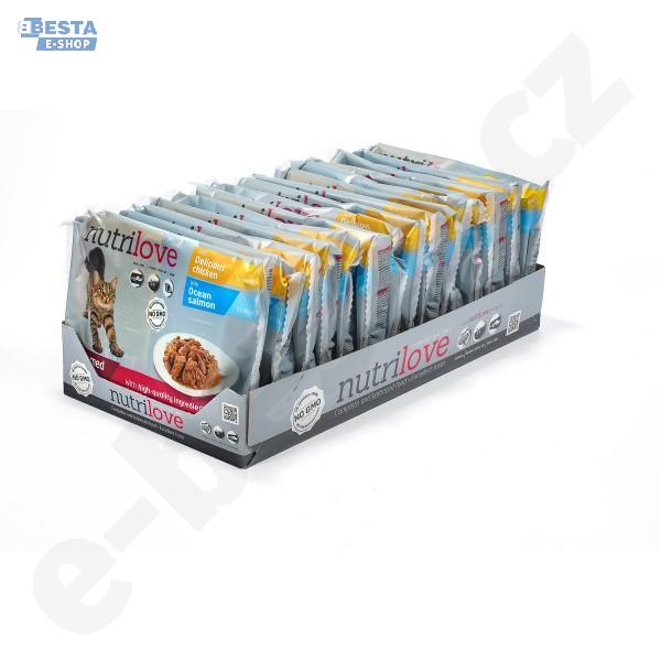 Nutrilove 2x s delikátním kuřecím + 2x s atlantským lososem pro dospělé kočky