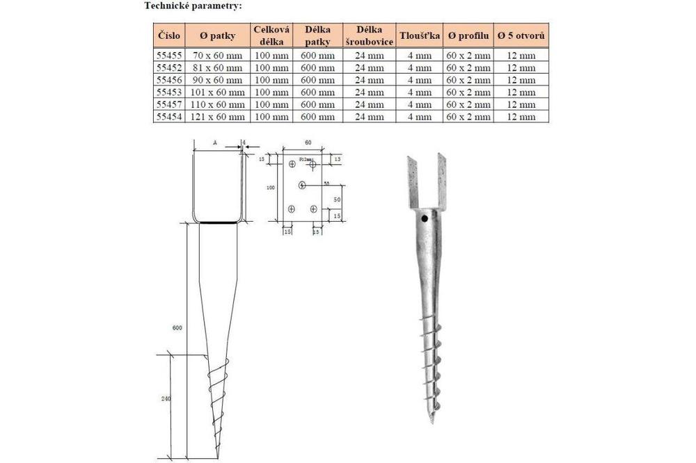 - použití na plotové sloupky, pergoly, terasy, informační tabule, garážová stání - jednoduchá manipulace Parametry: - "U" v názvu zemního vrutu udává šířku profilu U-patky pro uchycení dřevěného trámu - délka patky: 600 mm - délka šroubovice: 240 mm