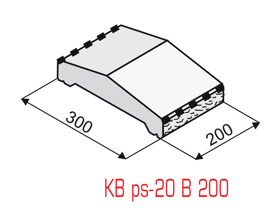 Plotový zákrytový prvek pro tvarovky a jiné zdivo šíře max. 200mm. Plotová stříška je opatřena okapničkou o šíři 50 mm, celková šíře zákrytové prvku je tedy 300mm.