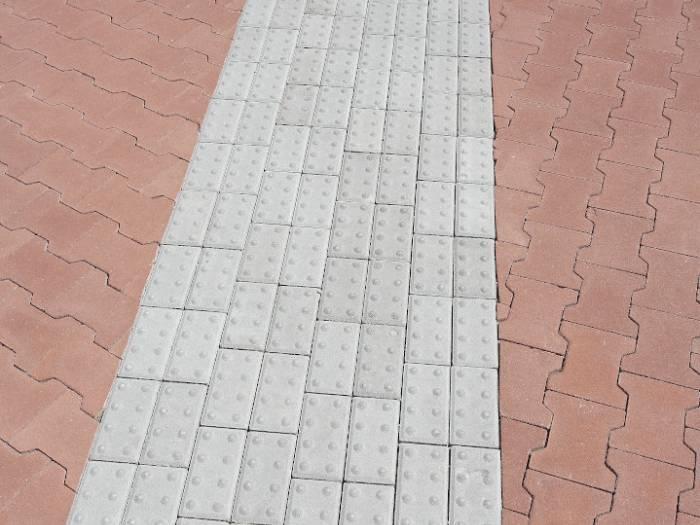 Dlažba s výraznými reliéfními výstupky splňuje parametry odpovídající předpisům Sjednocené organizace nevidomých a slabozrakých v Praze.