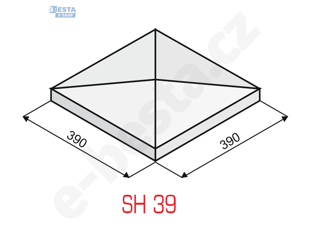 Zákrytový prvek pro plotové sloupky o rozměrech maximálně 300 x 300 mm. Povrch sloupové hlavice je hladký, tvar valbový. Hlavice je opatřena okapničkou. Tento zákrytový prvek je vyráběn jinou technologií a může být barevně odlišný od tvarovek KB-BLOK.