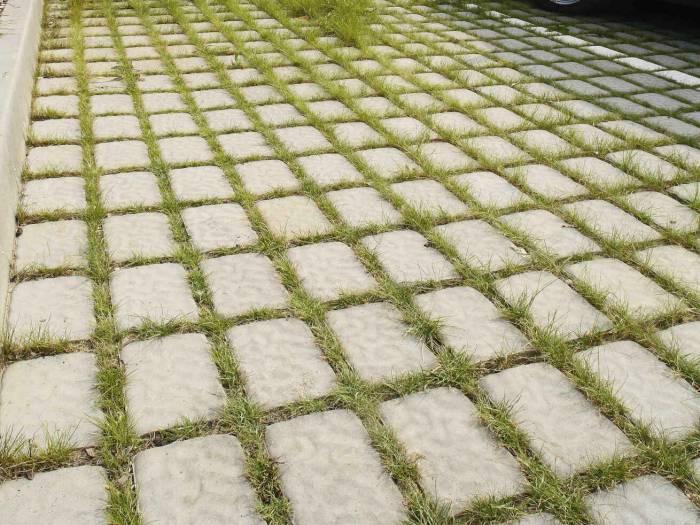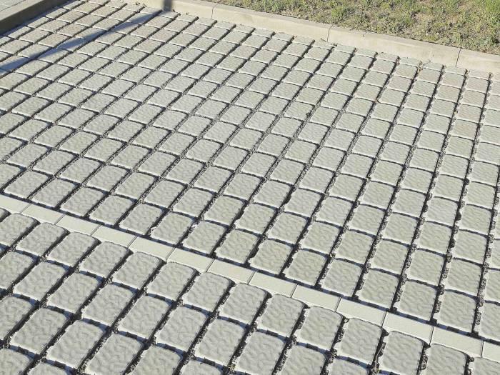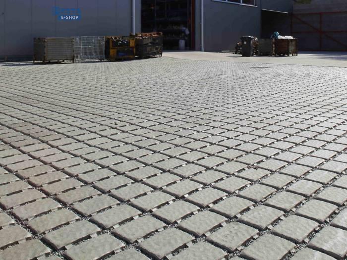 Dlažba je po dvou stranách opatřena distančními nálitky, které vytváří pravidelné 30 mm široké spáry mezi jednotlivými dlaždicemi. Spáry je možné vysypat zeminou smíchanou s travním semenem, podíl zeleně činí 27,9 % plochy. Nezapomínejte ale na časté zalévání především v suchém a slunném počasí. Pokud se chcete zalévání vyhnout, můžete spáry vysypat drobnějším kamenivem. Tato varianta vypadá velmi pěkně a zároveň má vyšší vsakovací schopnost.