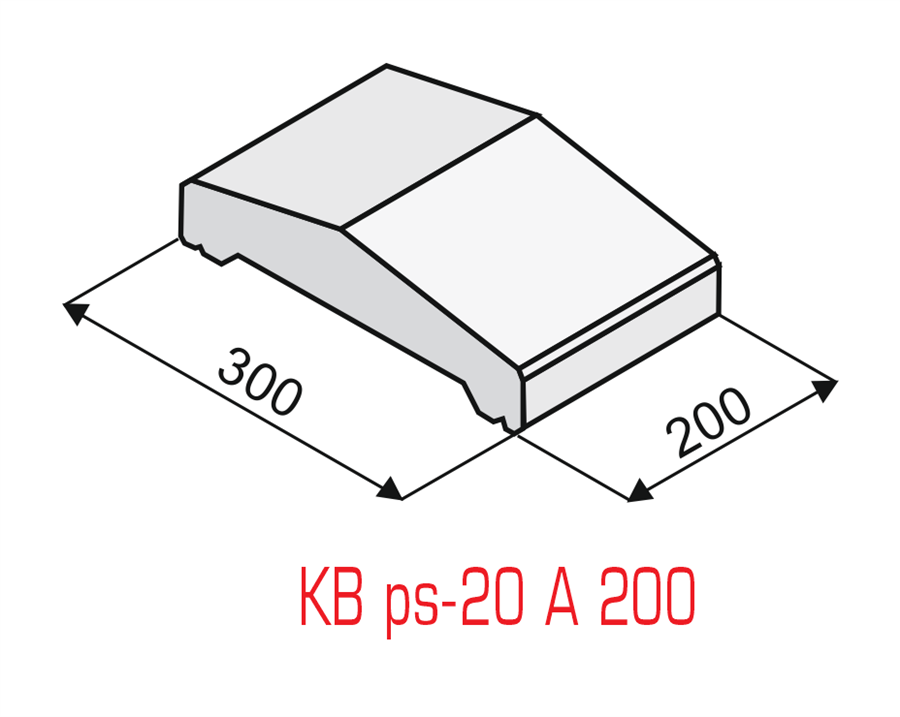Plotový zákrytový prvek pro tvarovky a jiné zdivo šíře max. 200mm. Plotová stříška je opatřena okapničkou o šíři 50 mm, celková šíře zákrytové prvku je tedy 300mm.